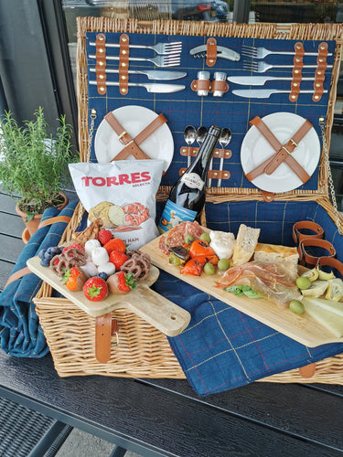 Price includes hire of a the basket, blanket, cutlery, crockery, glassware and of course are all the delicious goodies.